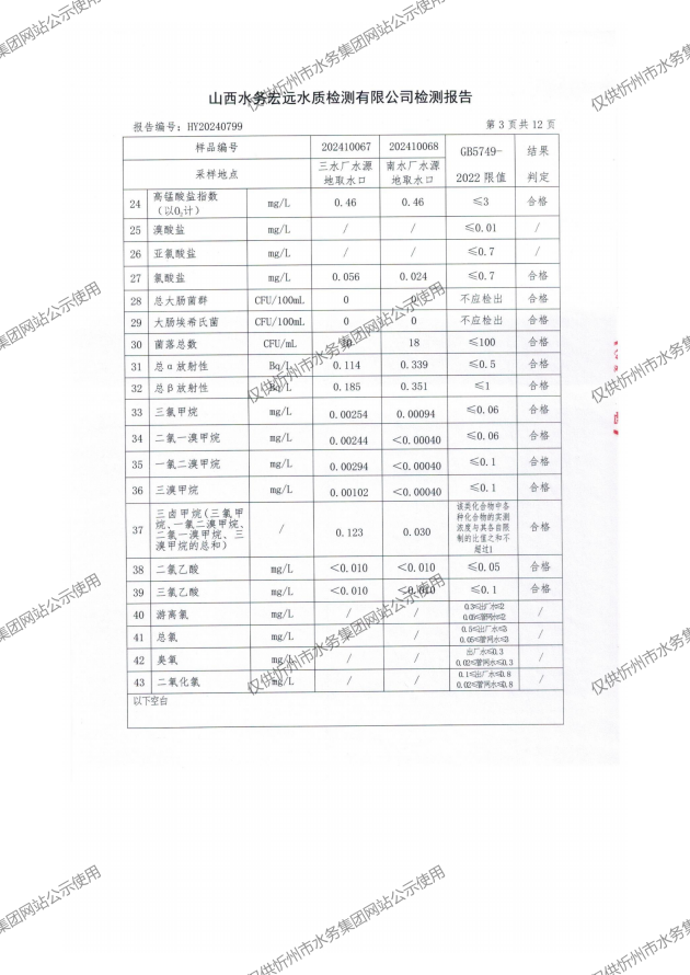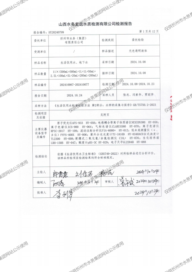 忻州城區(qū)公共供水水源水、出廠(chǎng)水、管網(wǎng)水、管網(wǎng)末梢水2024年10月份水質(zhì)信息公示