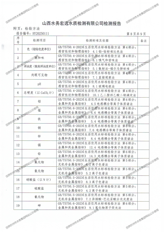 忻州城區(qū)公共供水水源水、出廠水、管網(wǎng)水、管網(wǎng)末梢水2025年4月份水質(zhì)信息公示