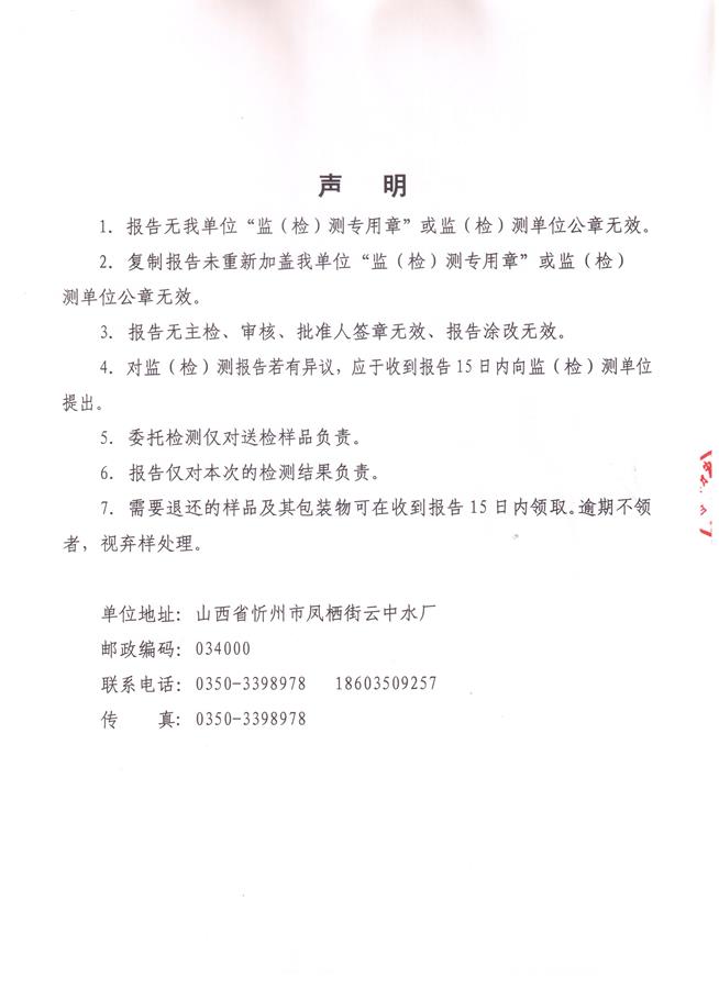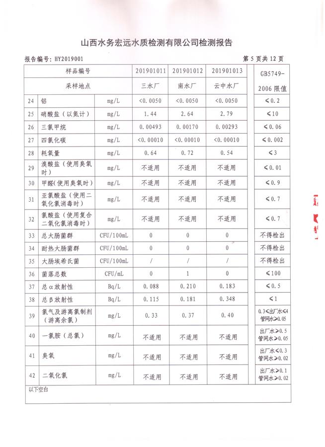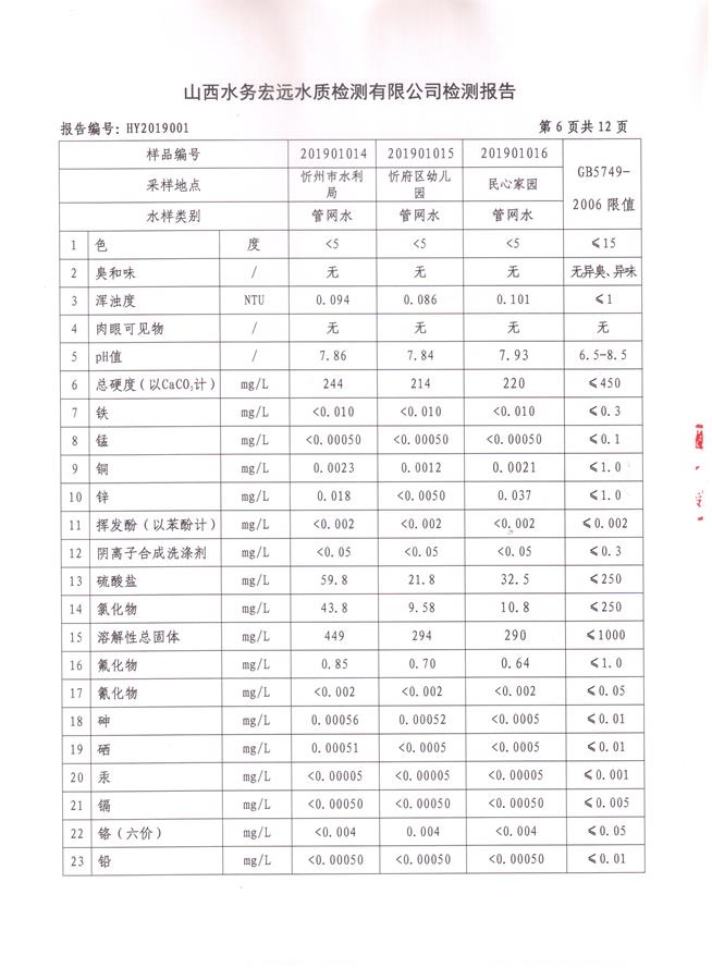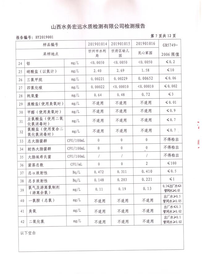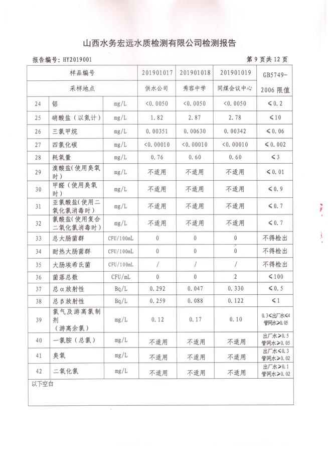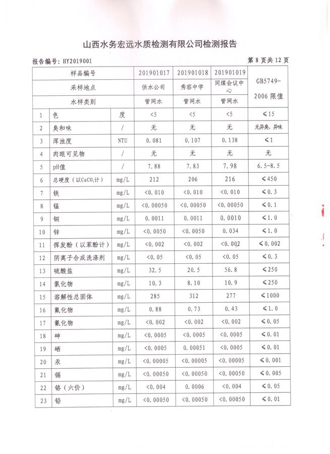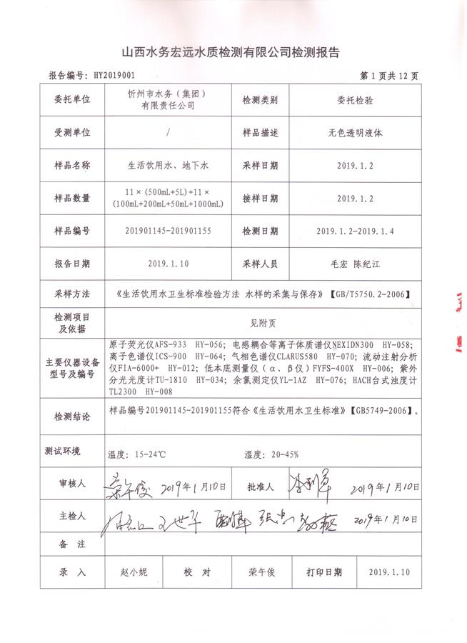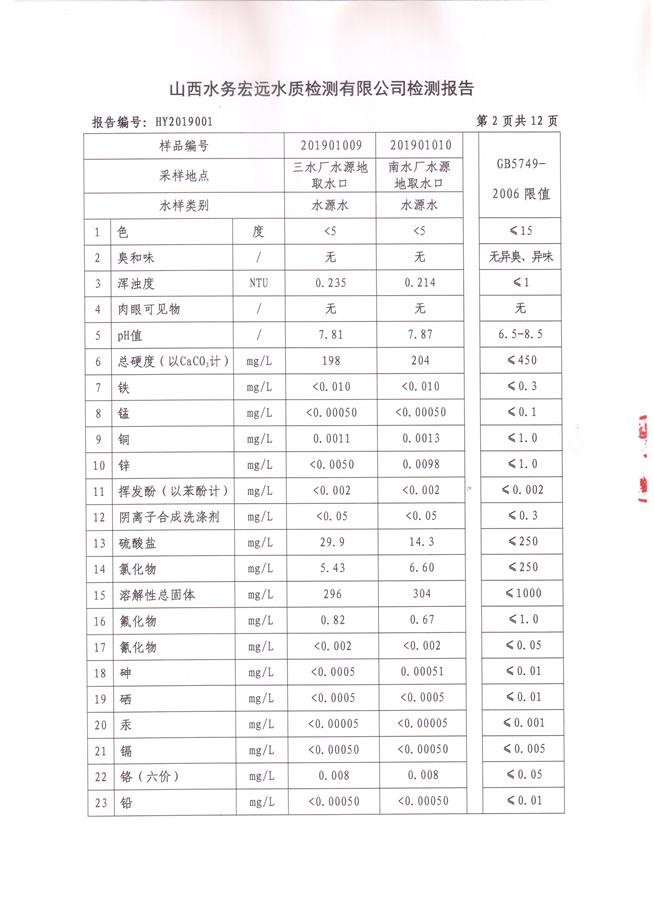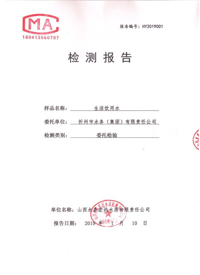 忻州城區(qū)公共供水水源水、出廠水、管網水、管網末梢水2019年1月份水質信息公示