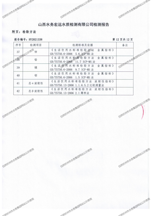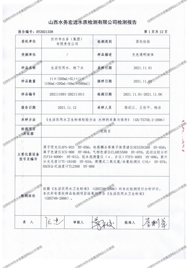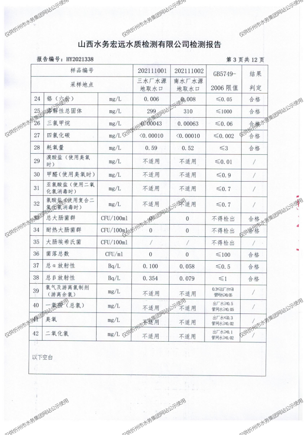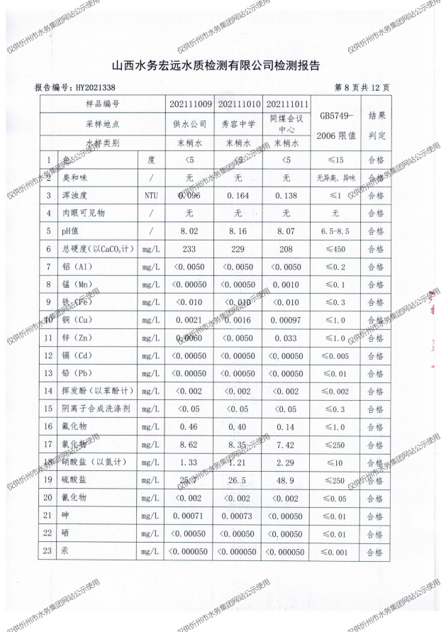 忻州城區(qū)公共供水水源水、出廠水、管網(wǎng)水、管網(wǎng)末梢水2021年11月份水質(zhì)信息公示