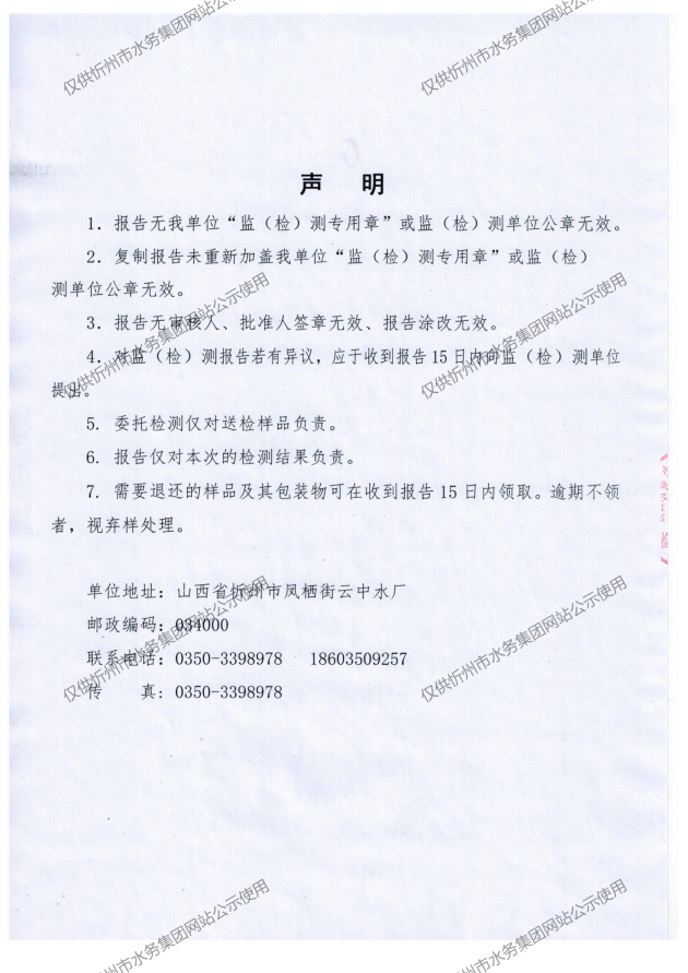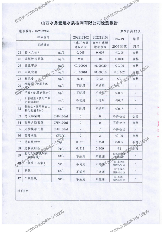 忻州城區(qū)公共供水水源水、出廠水、管網(wǎng)水、管網(wǎng)末梢水2022年12月份水質(zhì)信息公示