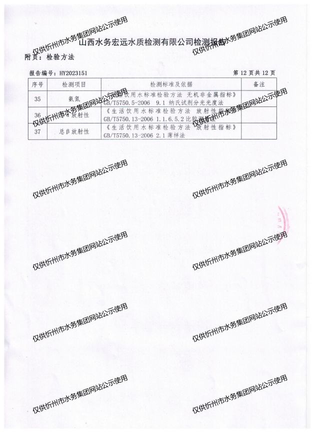 忻州城區(qū)公共供水水源水、出廠水、管網(wǎng)水、管網(wǎng)末梢水2023年7月份水質(zhì)信息公示